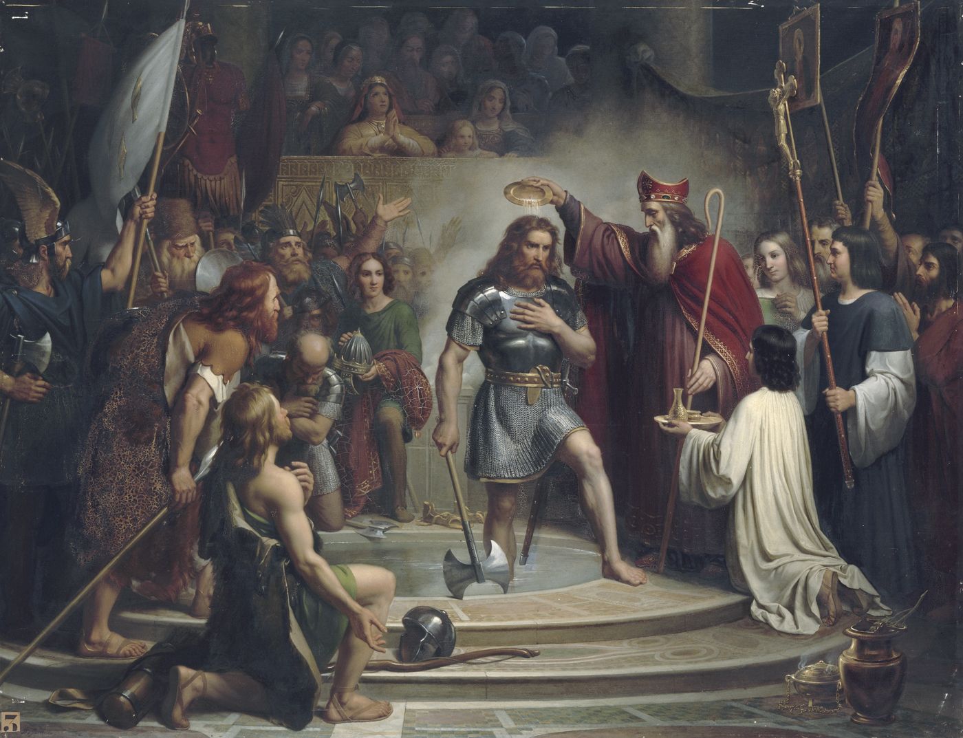 Clovis, unifiant les Francs sous son autorité, consolida un territoire remarquable s’étendant de la Gaule jusqu’au Rhin. Son baptême marqua non seulement son adhésion au christianisme, mais également l’alliance stratégique avec l’Église catholique romaine : une décision qui favorisa l’unification culturelle et religieuse des territoires conquis.